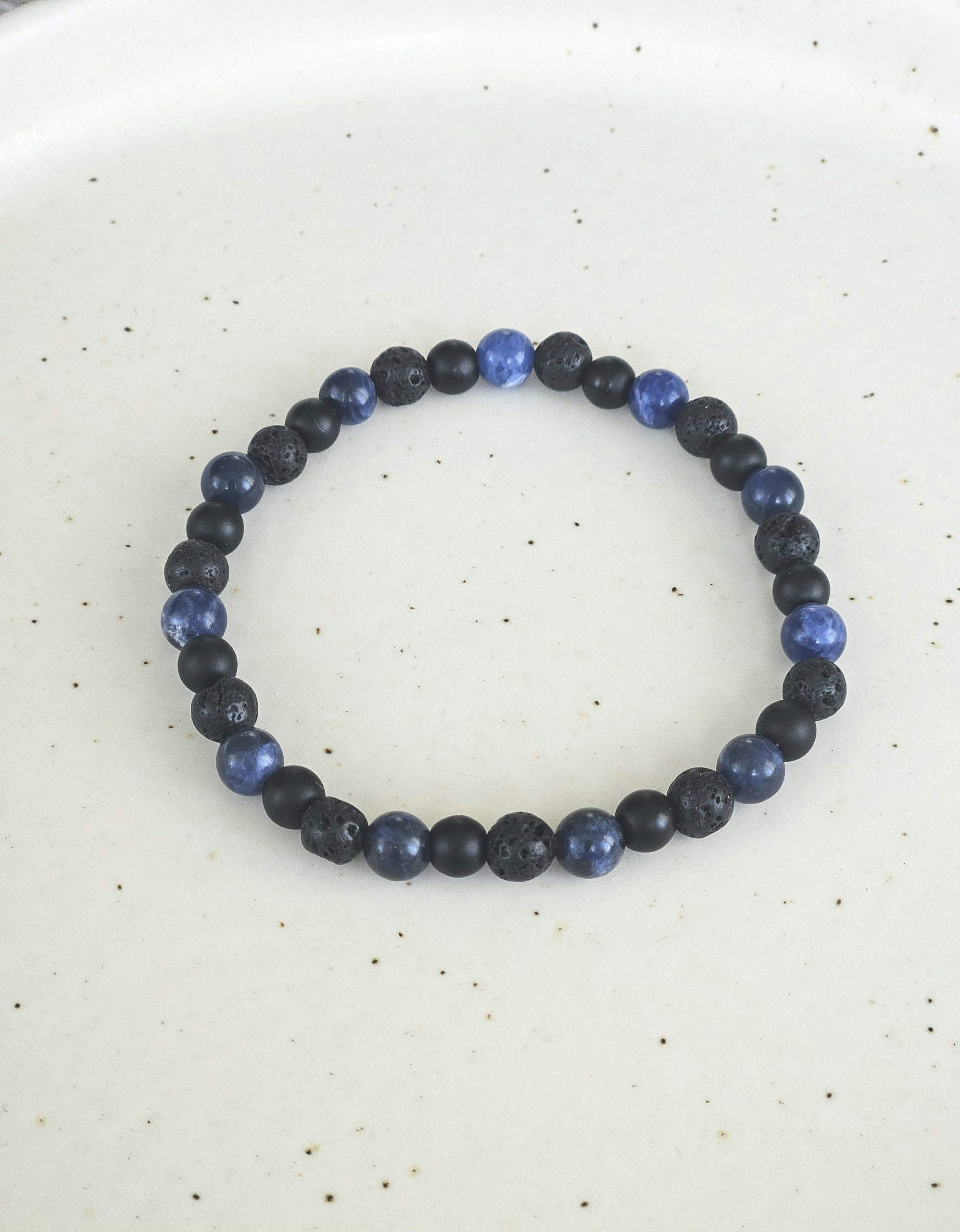 Bransoletka męska z kamienia naturalnego Sodalit, Onyks, Lawa Wulkaniczna